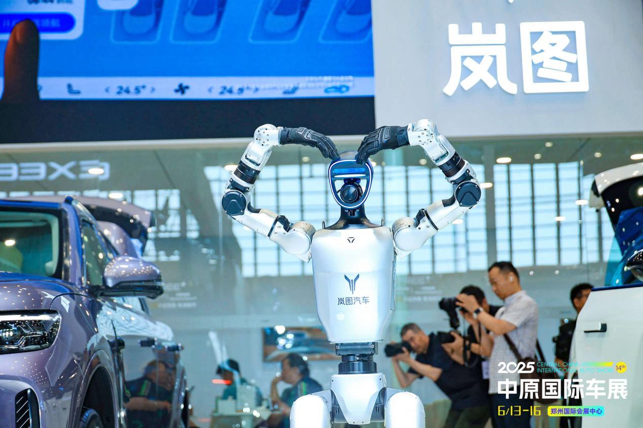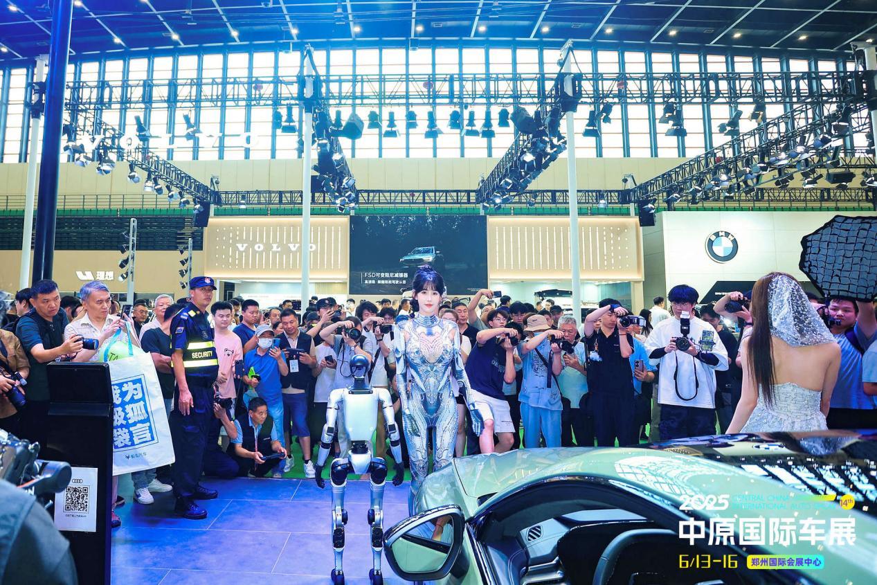 宇树机器人“郑能量”和机器狗“郑小汪”领衔的人工智能团首次亮相车展,引发观众驻足围观。