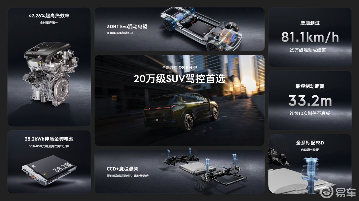 “全新有为,进阶无界”,全新领克08 EM-P以家庭用户的高价值需求为锚点,实现在原创设计、舒享座舱、智能互联、辅助驾驶、智控驾驶、主动安全的全面进化,打造20万级综合实力更强的SUV,刷新用户对高端出行体验的想象和期待。在新能源汽车行业持续内卷的今天,全新领克08 EM-P的到来,不仅将为消费者选购混动SUV提供新选择标准,也宣告了领克打造中国高端新能源汽车品牌的决心与实力,以产品破局,以价值立标,重塑市场格局。