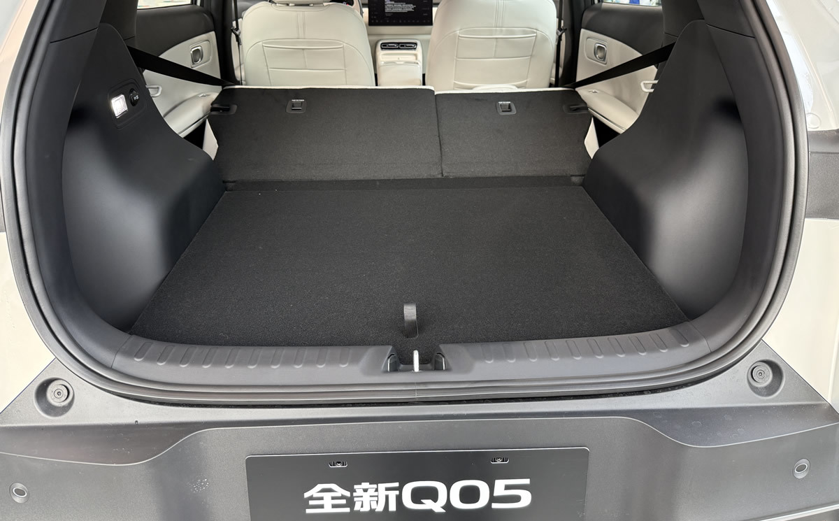 空间方面,全新Q05的长宽高分别为4435*1855*1600mm,轴距达到2735mm,得房率达到86.6%。前排座椅,支持加热、吸风式通风、按摩,以及2向副驾腿托调节等功能。整体来看车内空间还是挺宽敞的,且全车有29处储物空间。