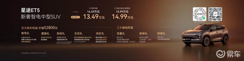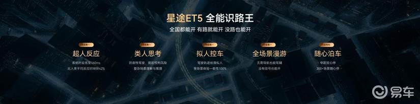 星途ET5以无与伦比的超智慧,打破了传统豪华的边界。它搭载猎鹰700辅助驾驶,全球首发地平线HSD及征程®6P芯片,以远超同级的560TOPS算力,构建起强大的数字底座,实现国内首个真正一段式端到端架构。星途ET5拥有了“超人反应”“类人思考”“拟人控车”“全景漫游”“随心泊车”五大核心优势,无论是在拥堵的城市高峰,未知的无图路段,星途ET5都能回馈毫秒级响应,优于行业40%;同级领先27颗传感器,3个足球场无死角覆盖,赋予驾驶者绝对的掌控感与安全感。星途始终坚持“能用是底线、敢用是标准、爱用才是享受”!