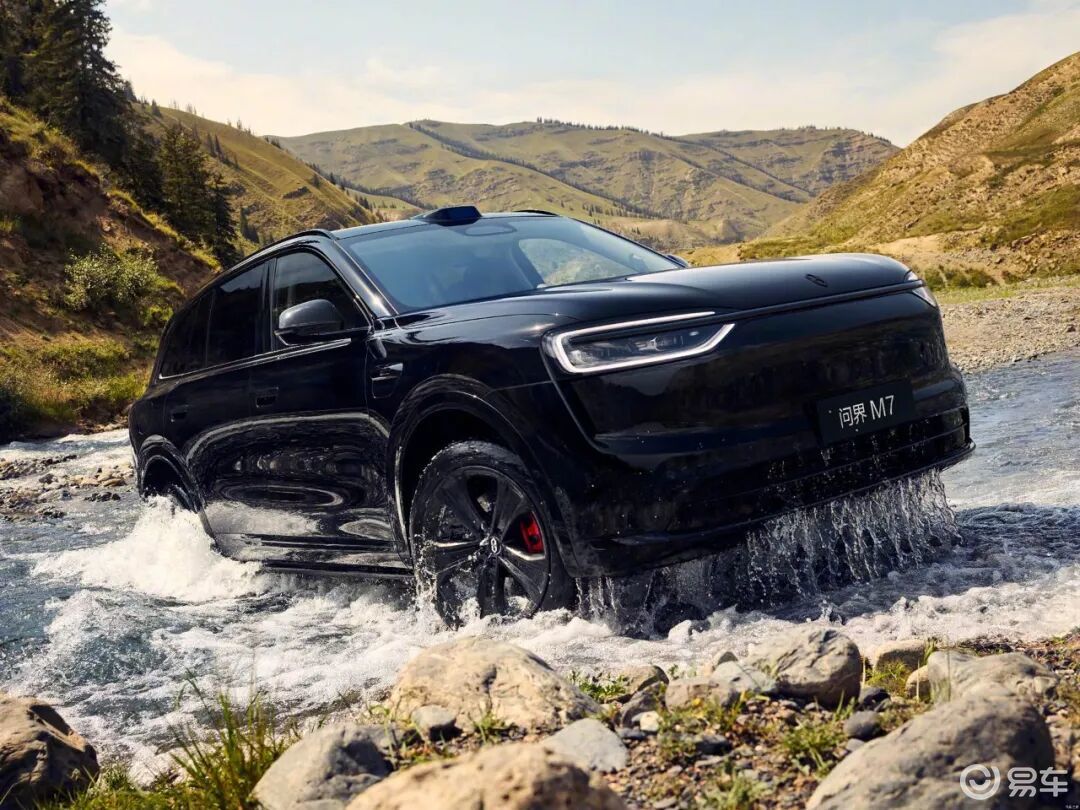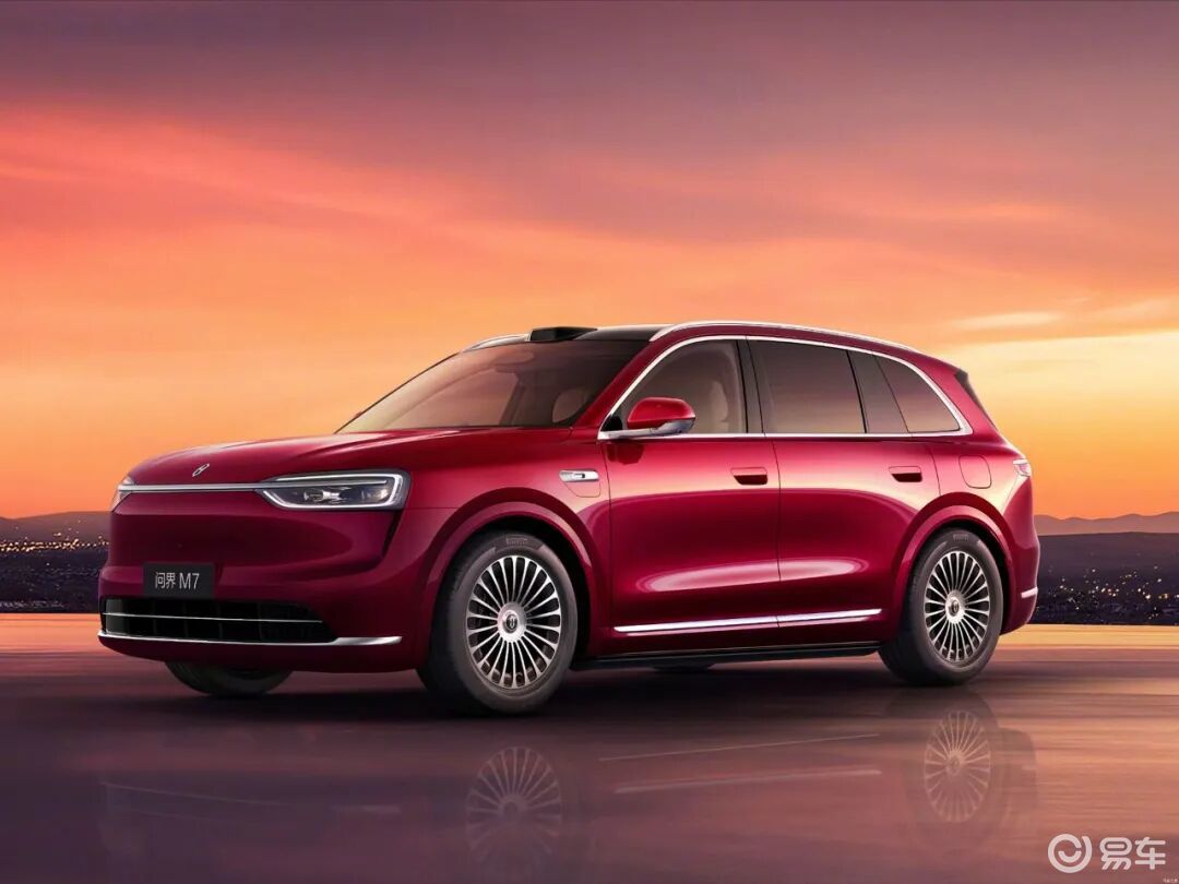 问界M7提供纯电与增程两种动力版本。增程版搭载新一代增程系统,基于华为巨鲸电池平台与智能静音节能增程技术,启停静谧,能耗表现更优。电池为宁德时代53.4kWh电池,CLTC纯电续航315km,综合续航达1625km。动力方面系统综合功率392kW,0-100km/h加速时间为5.1秒。纯电版则采用华为“巨鲸”800V高压电池平台,搭载华为DriveONE高压七合一电驱,体积更小、效率更高。全系标配100kWh三元锂电池,充电15分钟可从30%充至80%,后驱版CLTC纯电续航达710km,满足长途出行需求。底盘方面,问界M7基于途灵平台打造,配备前双叉臂、后五连杆独立悬架,以及双腔闭式空气悬架与连续可变阻尼减振器,支持五档高度调节,兼顾舒适性与操控感。