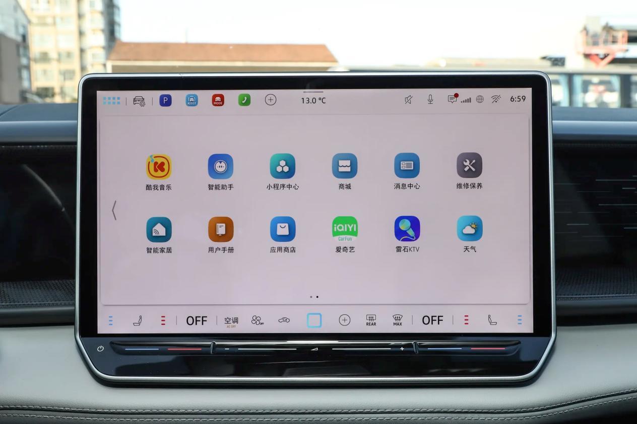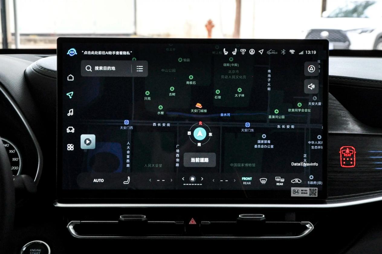 途昂的内饰用料别具一格,除了大量使用皮质材料,和双线绗缝工艺,还在中控台副驾前方运用了木饰纹面板,并在中控岛台区域使用了少量烤漆面板,轻轻触上去,质感比较细腻。多功能皮质方向盘,搭配旋钮式怀挡,操控起来也比较方便。智能车机包括10.3英寸全液晶仪表盘、15英寸中控屏,其中中控屏内置的是高通骁龙8155芯片,像5G网络、前排语音识别、应用下载等功能系数支持。其次,车内还配备了单色氛围灯、自动防眩目内后视镜、车载空气净化器等配置。