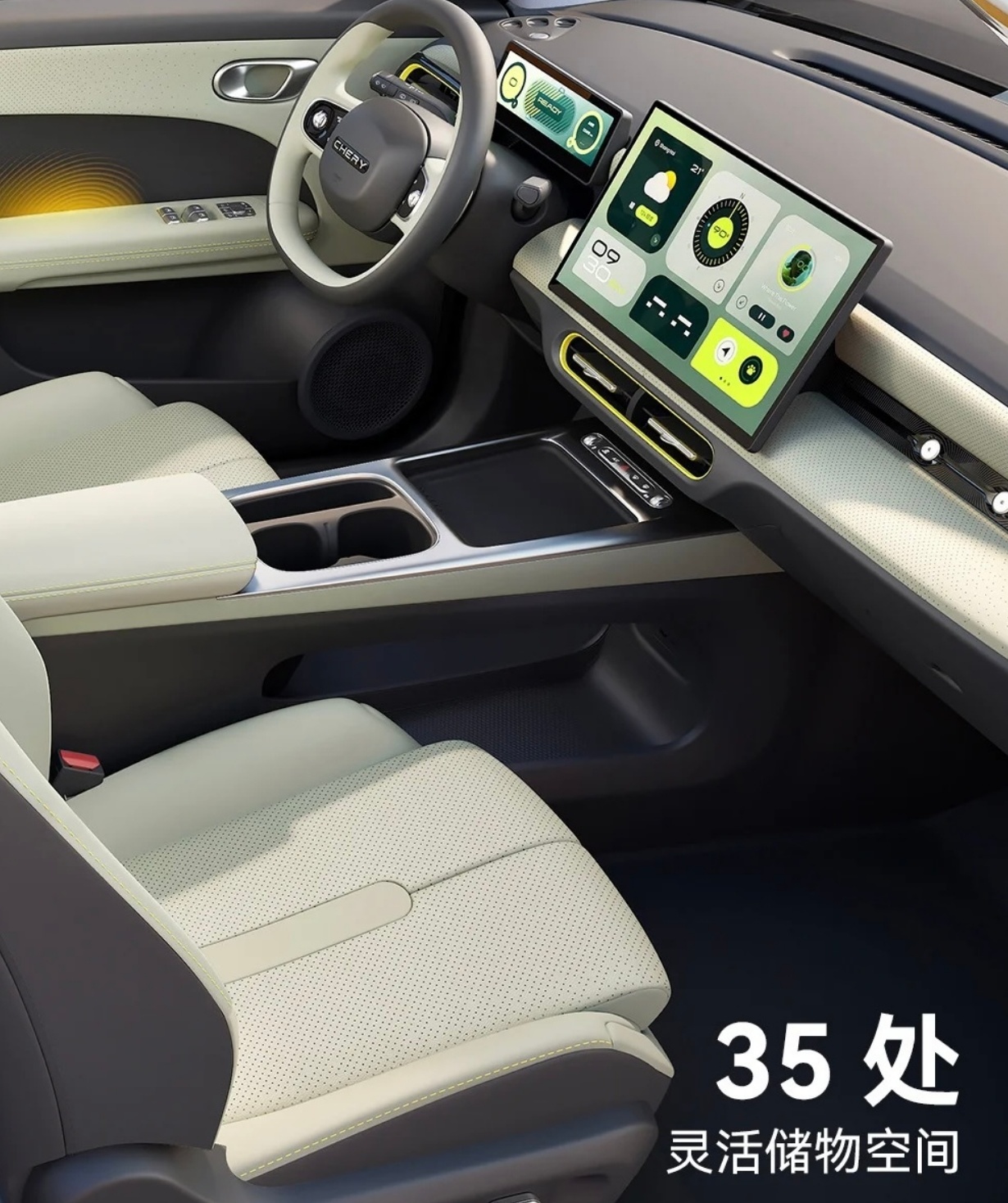 新能源化之后,尺寸比当年更大,4195*1811*1569mm,轴距2700mm,跟星愿接近,电机有58kW和90kW两种。设计是QQ3的最大卖点,有大量圆形类似胶囊的元素,还有很多撞色设计,就车机界面也是大色块+精致路线,原创度还是蛮高的。如今90后都35+了,QQ3会不会是他们拿来代步用的增购之选?