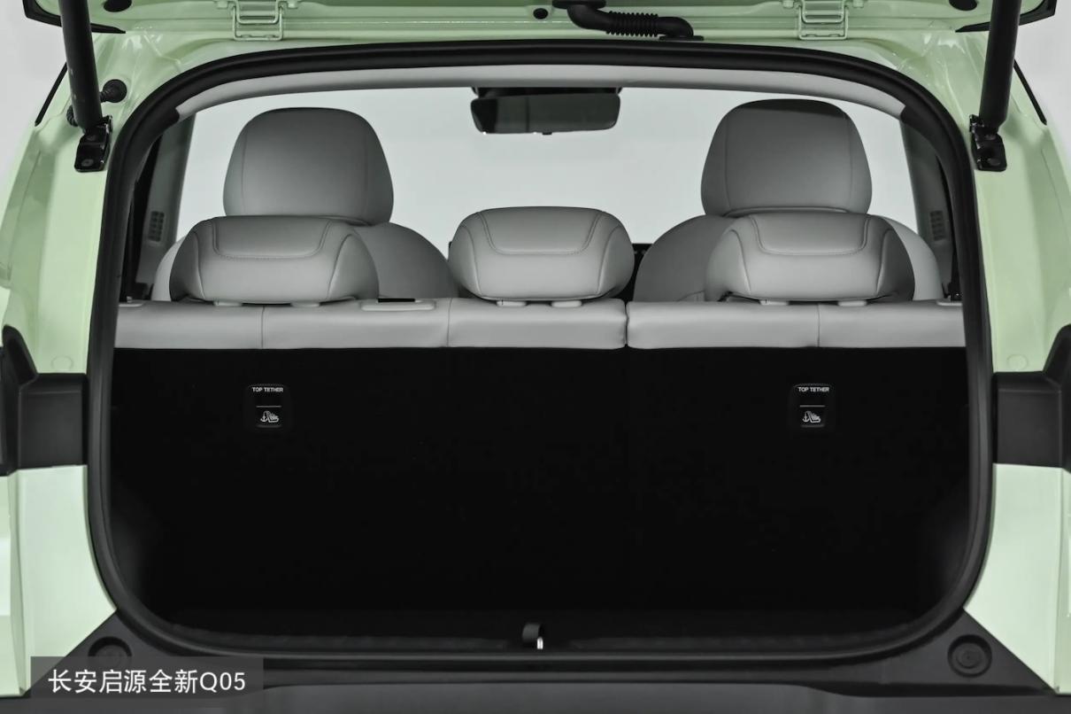 长安启源全新Q05则有了4435/1855/1600mm,除了长宽优势外,轴距有2735mm,在小型SUV里还是算比较大的,毕竟这是高一级的紧凑型SUV。这样一来,车辆有540L的后备厢标准容积,除了1330mm的横宽外,进深达到了825mm,除了说行李箱,各式各样的年货、冬被什么的也都放得下。