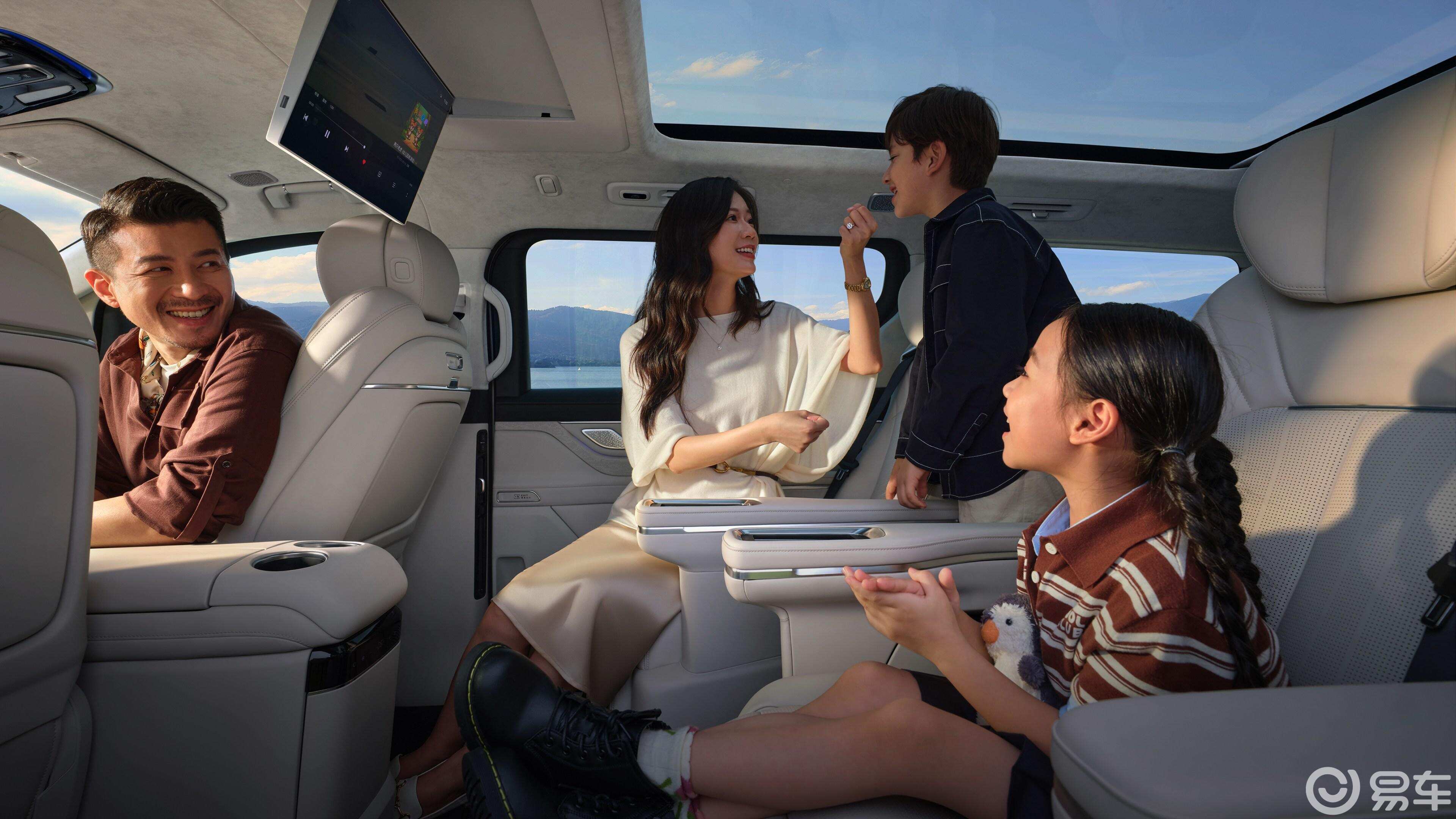 至于内饰设计,也是一般新能源汽车固有的造型:540度全景影像系统,L2级别的千里浩瀚H5智能驾驶辅助系统。此外,还匹配了全景大天幕,15.4英寸的悬浮式中控屏幕,后排也搭载了17.3英寸的娱乐大屏,更是搭载了19.8英寸的HUD数字抬头显示功能。值得一提的是,座椅加热、通风,这些简单的设计做到了标配,中高配置车型还搭载按摩功能;第2排是两个独立的航空座椅,搭配上大彩电,车载冰箱设计,舒适性较高。