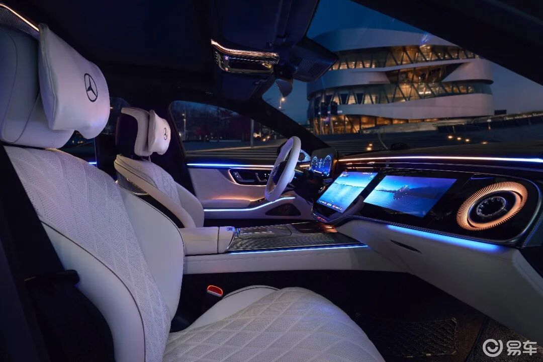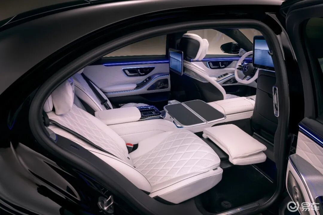 奔驰新S级后排的头等舱级独立座椅支持43.5度靠背调节与50度腿托调节,搭配全新高端娱乐系统,两块13.1英寸显示屏与独立遥控器,让后排乘客无需起身就能掌控舒适。