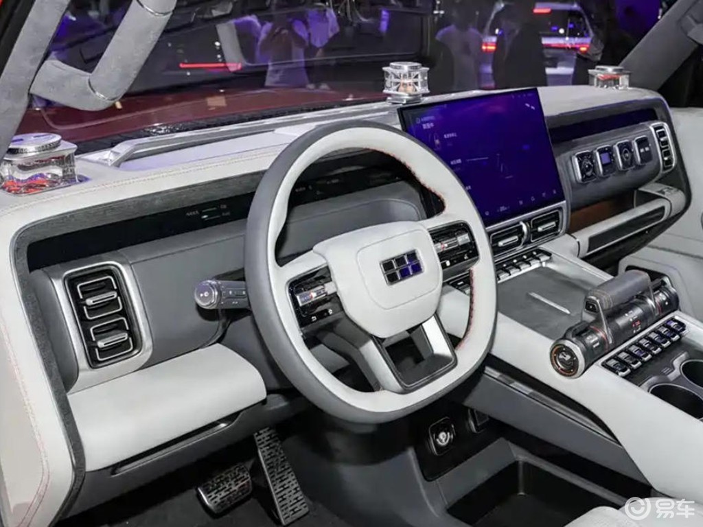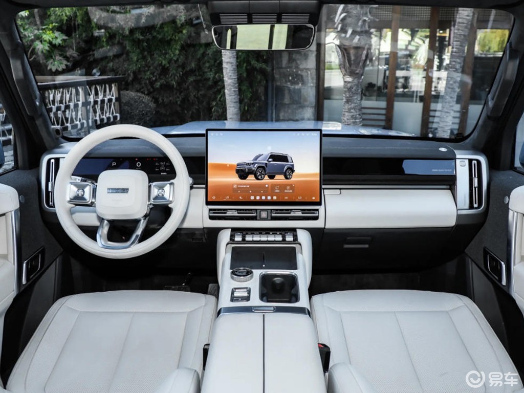 内饰配备悬浮式中控屏,下方则为空调出风口和一排的物理按键,可谓是兼顾科技与越野属性。车顶采用双片式竖向天窗,既保证了车顶结构的强度,也很好地兼顾到了采光性,不失为一种个性化的做法。