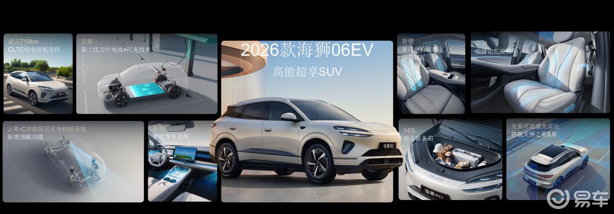 海狮06去年一经上市,便创造了“百日十万辆”的销量神话,成为行业内最快达成十万辆的爆款车型。此次焕新而来的2026款海狮06EV,展现出全面进化的硬核实力,在智能、舒享、驾控、颜值、安全五大维度实现了全方位升级,以超170项全系标配,满足精英家庭用户对高品质出行的期待。