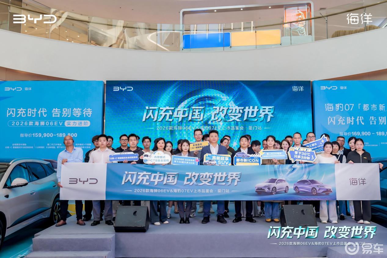 活动尾声,全场媒体朋友与车主共同登台,在舞台前留下了一张大合影。镜头定格的瞬间,也为这场闪耀厦门的上市品鉴会画上了圆满的句号。从2026款海狮06EV的稳健可靠,到海豹07EV的全面进阶,比亚迪海洋网以两款重磅新车的强大阵容,在海上花园厦门率先开启了全民闪充新时代。