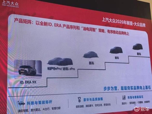 2026年,上汽大众将陆续推出7款全新新能源车型,全面覆盖纯电、插混和增程三大技术路线。