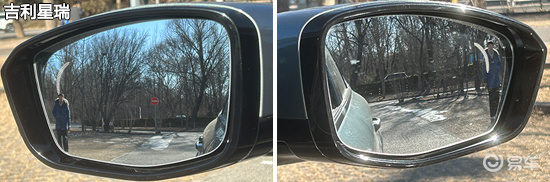 在外后视镜视野范围测试环节中,吉利星瑞和零跑Lafa5的两侧外后视镜视野范围均达到,甚至超过了同级别车型测试均值。其中,吉利星瑞表现最佳。相比之下,银河星耀6两侧外后视镜视野范围角度均未达到同级别车型测试均值,有待优化。
